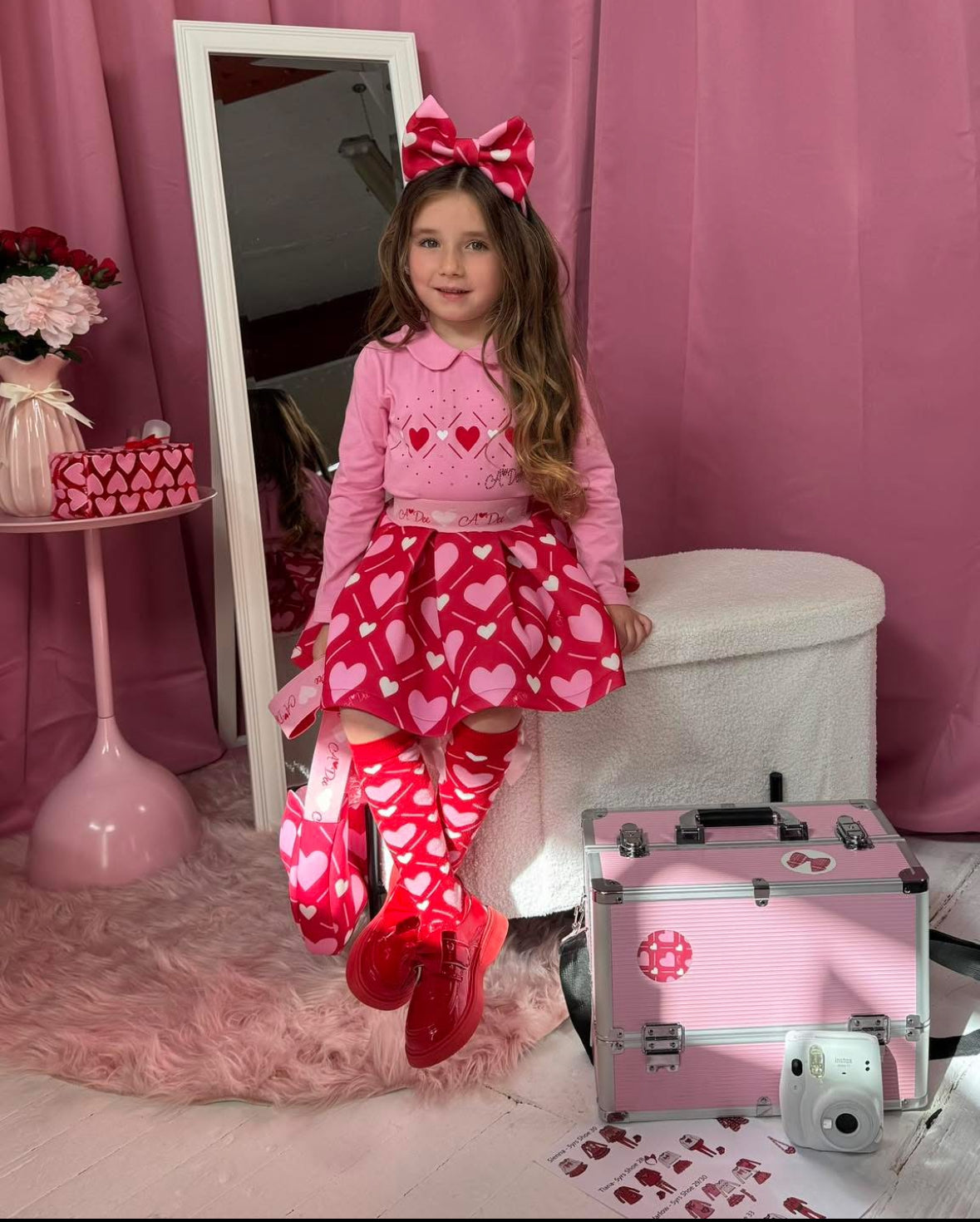 A DEE Love Story Lyla Heart Print Skirt Set - Peony Pink