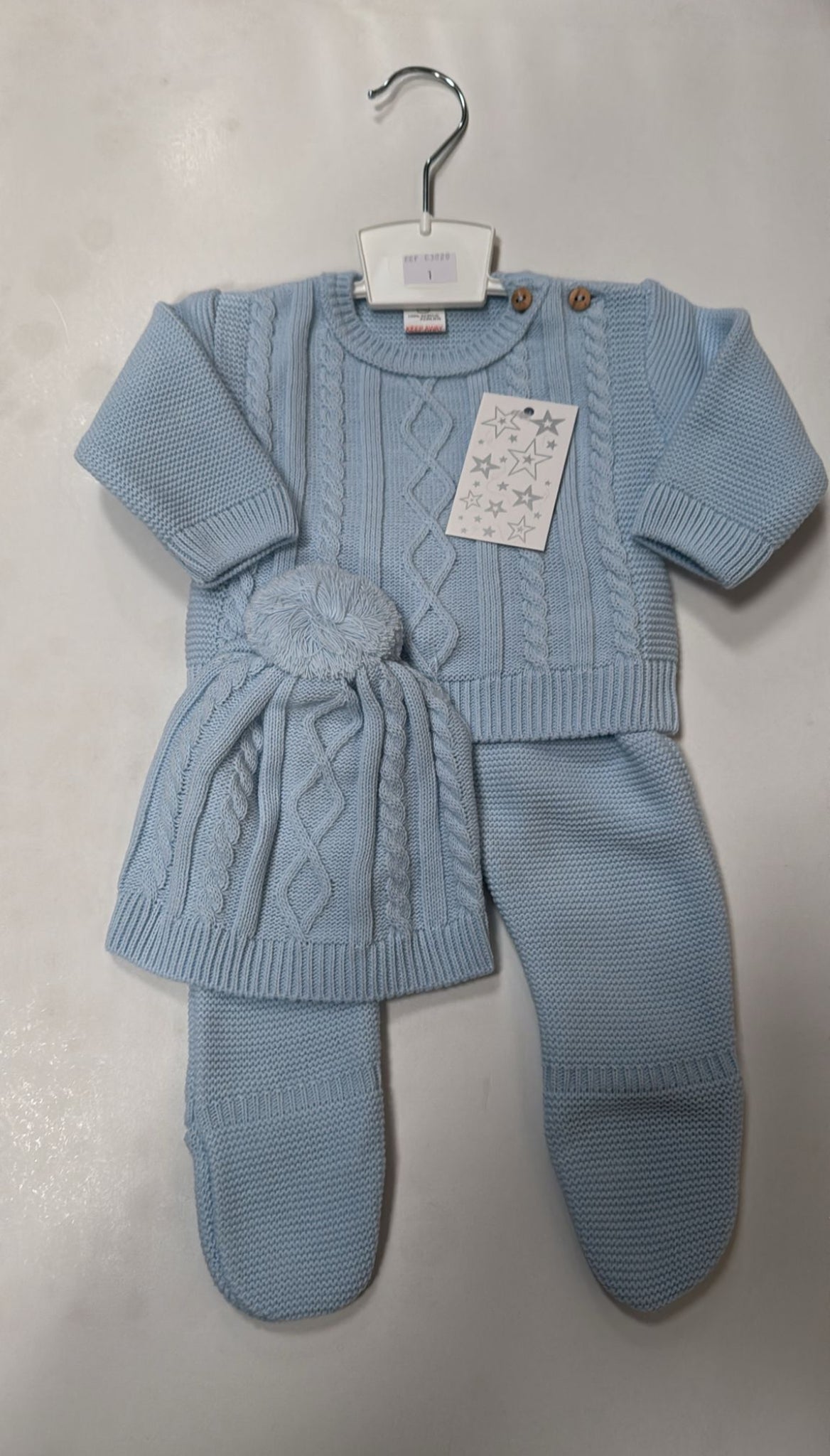Baby Boys Cable Knitted Set with Pom-Pom Hat - Baby Blue