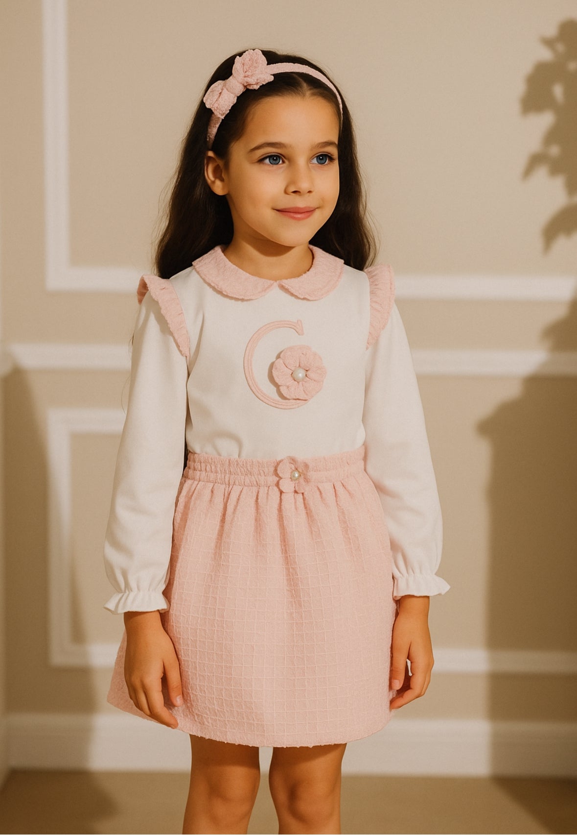 CHIC By Deolinda Girls Pink Chiffon & Tweed Girls Puffball Skirt Set